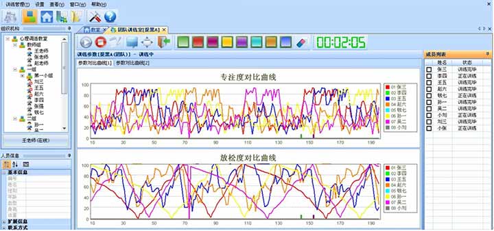 (1) 数据统计和分析:用曲线图、柱状图、饼图等图表形式显示分析结果,给予训练效果评价。通过对比训练前后的脑电数据和心理指标,评估职业人的专注力、放松度、情绪状态等方面的变化。